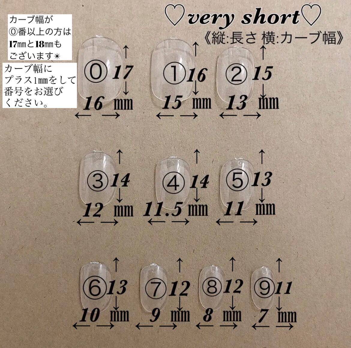 ちょうどのカーブ幅がない場合は、そのままの数字を記載ください。大きめのチップを削って調節させていただきます。