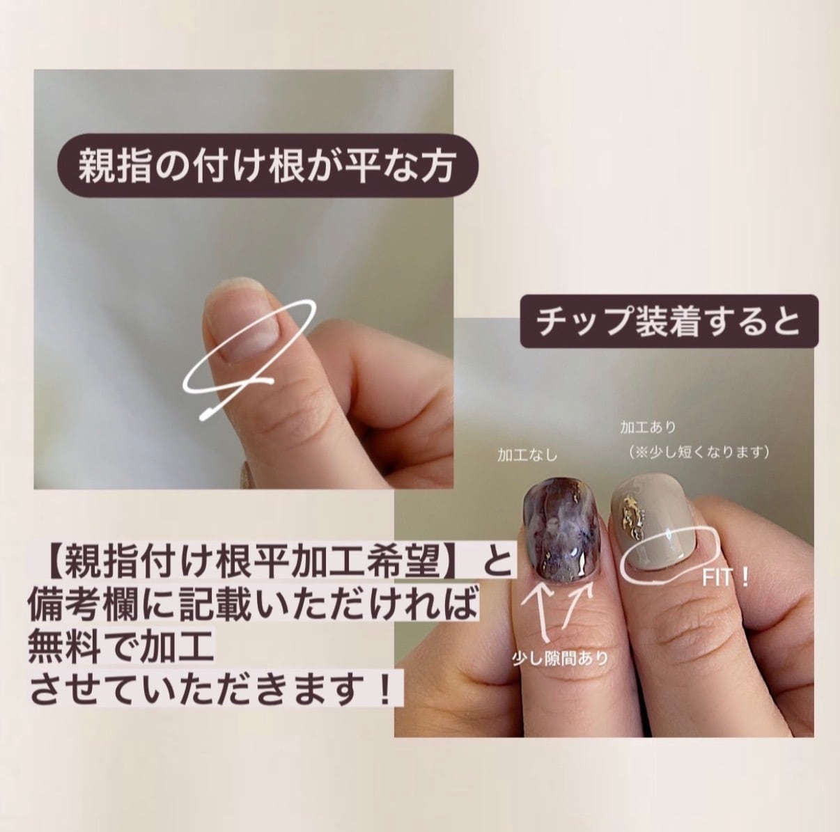 【親指付け根平加工希望】と記載ください。